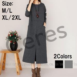 部屋着にしてもとっても可愛い裏起毛 であったかい マキシ丈ワンピース ワンピース マキシ丈 パーカーポケット付き ワンピ スカートルームウェア 長袖 トレーナー マタニティ パーカー