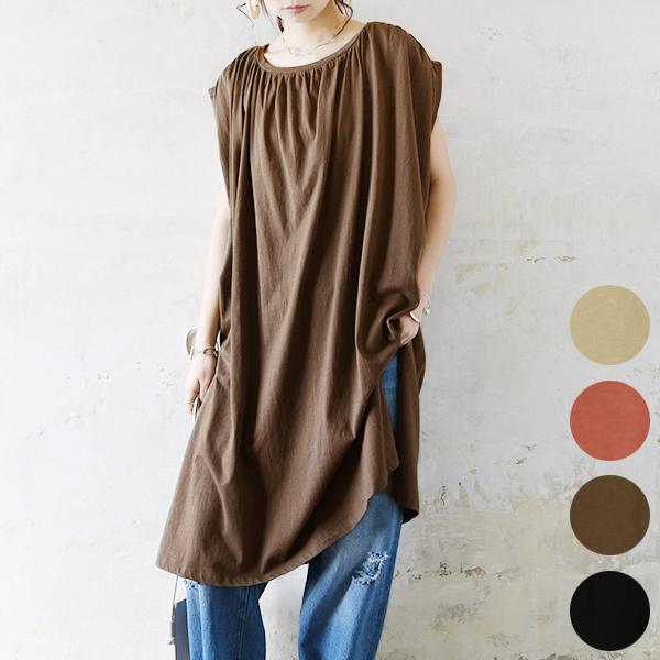 チュニックワンピース レディース 春夏 20代 30代 40代 ギャザー コットン 綿 スリット シンプル おしゃれ