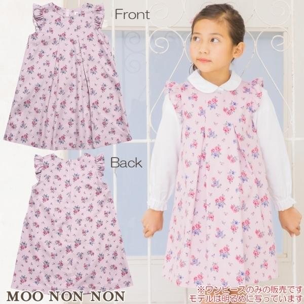 子供服 女の子 ワンピース ジャンパースカート 半袖 お出かけ着 発表会 結婚式 レース お花モチーフ付きバルーンかぶりタイプ むーのんのん moononnon