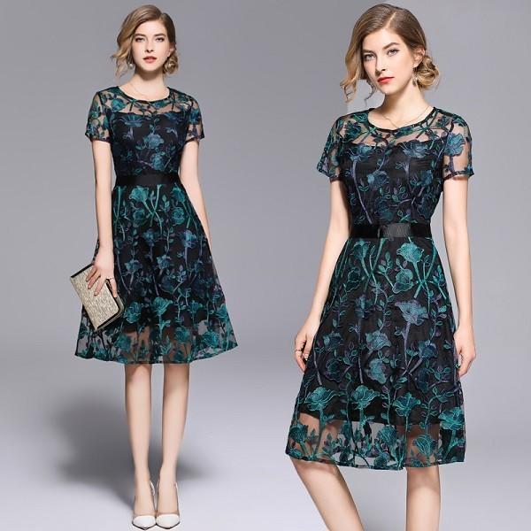 即納 パーティードレス ワンピース 花柄 レース ひざ丈 ワンピ結婚式 お呼ばれドレス 謝恩会 同窓会 結婚式ドレス お呼ばれ ワンピース 40代 30代 20代 親族結婚式 パーティードレス ワンピース dressy lily ドレッシーリリー プチプラドレスワンピース専門店 powered