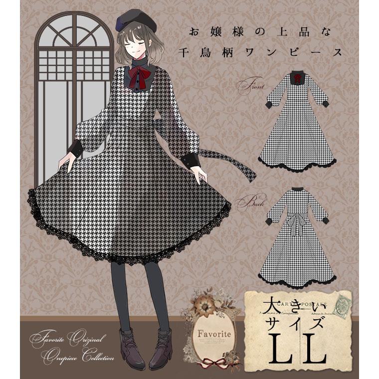 大きいサイズ ブラウン ロング丈 長袖 秋冬 favoriteオリジナル ブラウスデザイン チェック フロッキードットが贅沢なお嬢様ワンピース 2018年11月新作上旬 森ガール ワンピ専門店のfavorite公式通販サイト