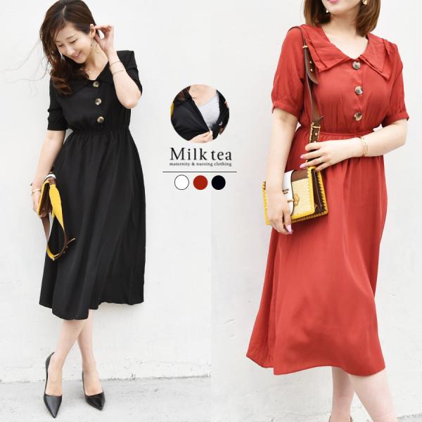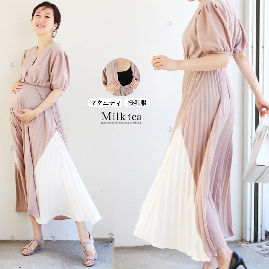 授乳服 マタニティ ワンピース ケイト ボタンタイプの授乳口 お宮参り お呼ばれ フォーマル お宮参り マタニティウェア 半袖 夏 8402 授乳服とマタニティ服のmilk tea 通販 yahoo ショッピング