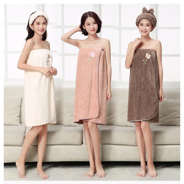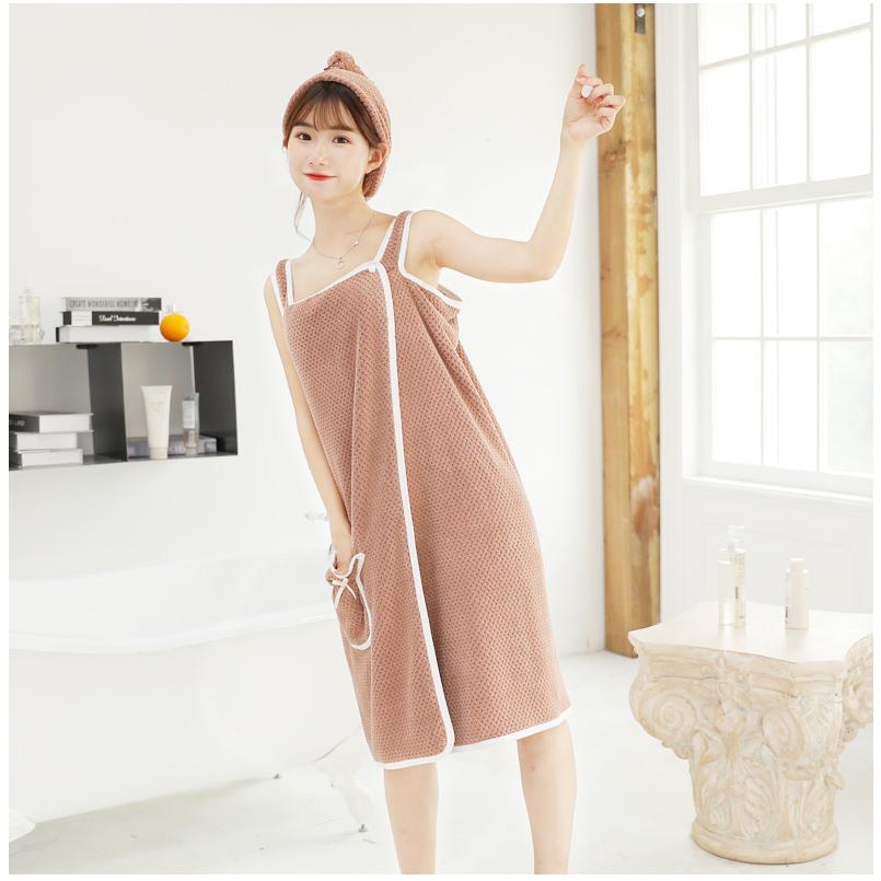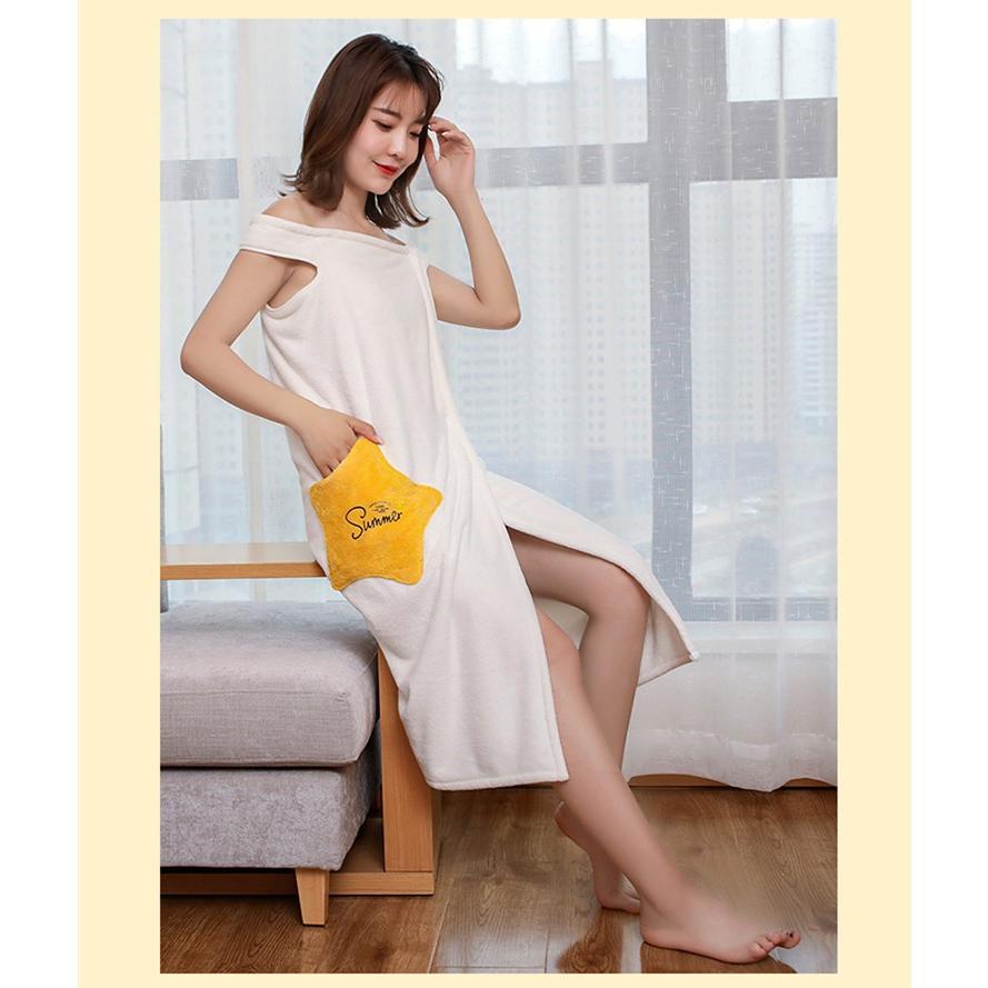 着るバスタオルレディース 可愛い バスローブ ボディタオル お洒落 バスワンピース ルームウエア 巻きタオル ふわふわ バスタオル お風呂上がり 吸水性も抜群 前開き ボタンで留める フリーサイズ