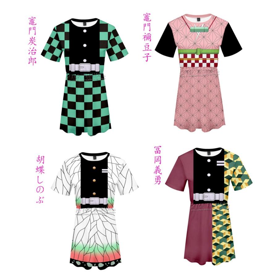 hezhipu 鬼滅の刃のワンピース レディーズ 半袖 夏 衣装 柔らかい 快適 鬼滅の刃tシャツ 胡蝶 しのぶ風の半袖 夏服 コスチューム 仮装 ガールズ 女の子 ギフト 誕生日 プレゼント xxs