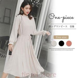 きれいめ レディース ワンピース プリーツワンピ 秋冬 ロングワンピ 長袖 レディース ワンピ 20代 30代 40代 上品 ウエストリボン 大きめ shopmall to you powered by base