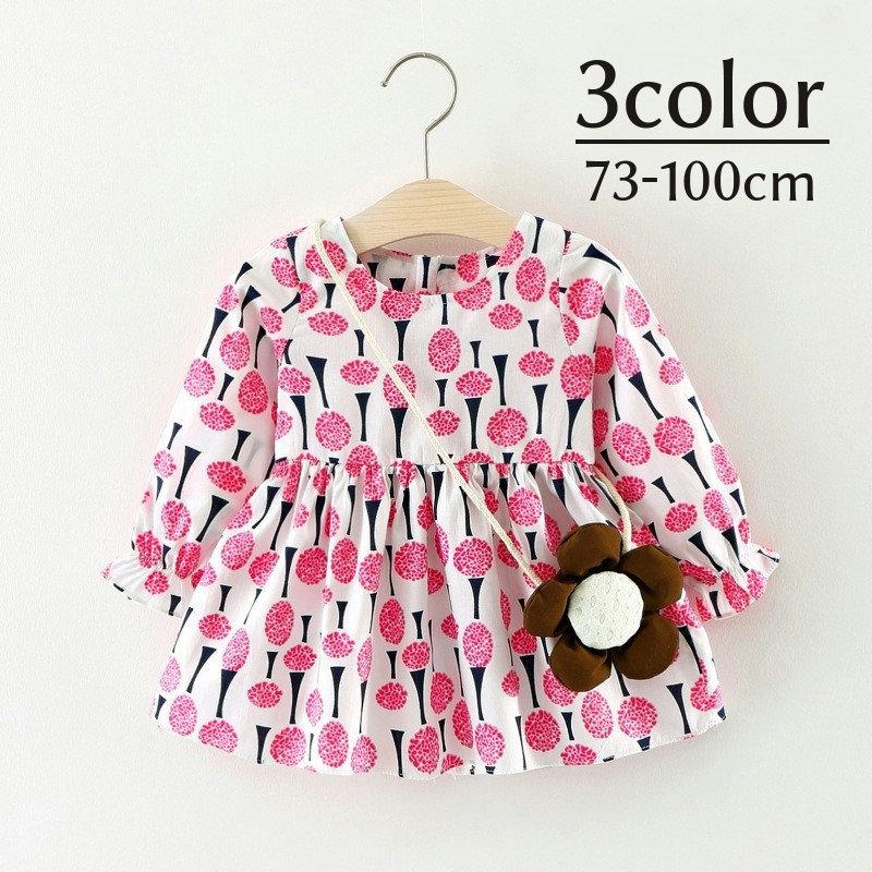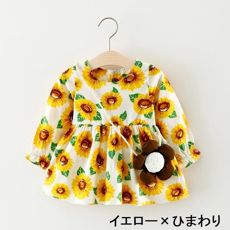 ワンピース ベビー キッズ 子供用 女の子 女児 長袖 ポシェット付き ラウンドネック ヒマワリ 花柄 フレア かわいい おしゃれ お出かけ 子供服 top 70427 おとりよせ com 通販 yahoo ショッピング