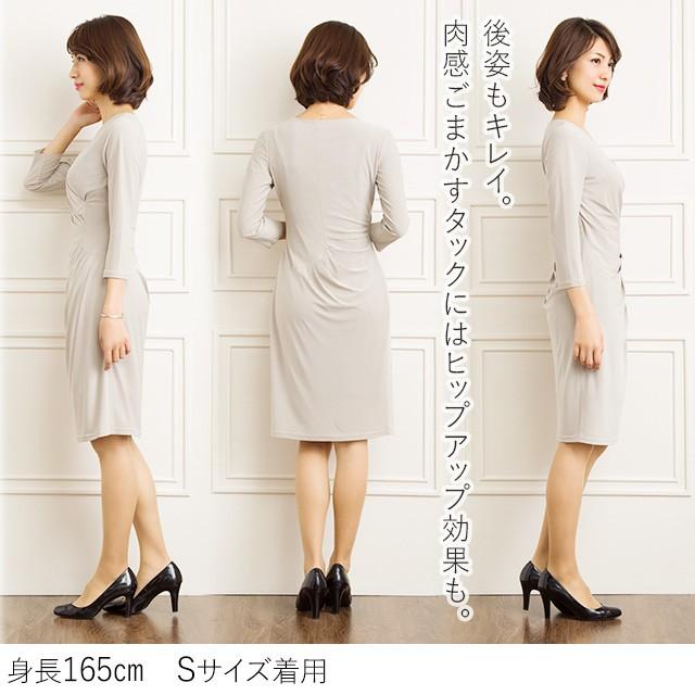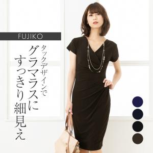 楽天市場 ワンピース 不二子カシュクール ワンピース 無地 opc6 050001 きれいめ 30代 40代 50代 着やせ 大人 上品 エレガント 大きいサイズ トールサイズありタイトワンピース ジャージー オフィス 結婚式 婚活 二次会 同窓会 入学式 卒園式 卒業式 膝丈 七分袖 春夏