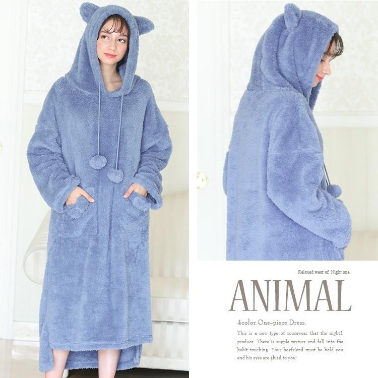 ルームウェア ワンピース ロング もこもこ レディース 大きいサイズ 可愛い 長袖 ふわもこ モコモコ 部屋着 パジャマ パーカー 耳 6639 パーティードレス通販ナイトワン 通販 yahoo ショッピング