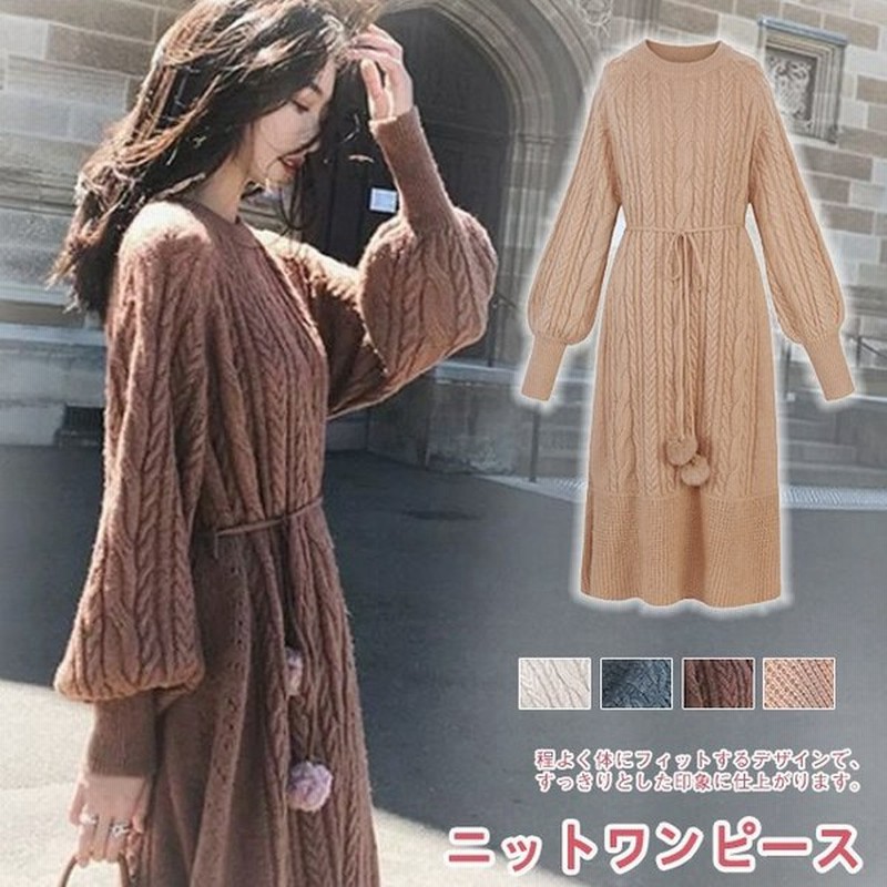 全3色 ニットワンピース ベルト付き タートルネック 長袖 ロング丈 ワンピース ゆったり 秋冬 お出かけ 女子会 デート カジュアル フェミニン 大人可愛い こなれ感 エレガント とろみ ウエストマーク 無地 like fashion powered by base