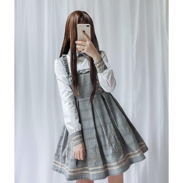 甘いロリータopドレスグレー長袖チェック柄クラシックロリータワンピースドレス