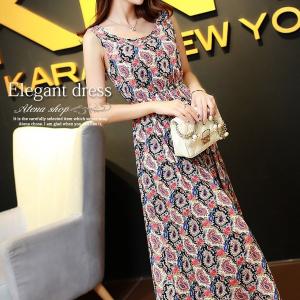 花柄 ワンピース リゾートワンピース 夏ワンピ ノースリーブワンピース ロングワンピース マキシワンピース ウエストギャザー 1584 sayurio レディースアパレル ファッション プチプラ アラサー アラフォー powered by base