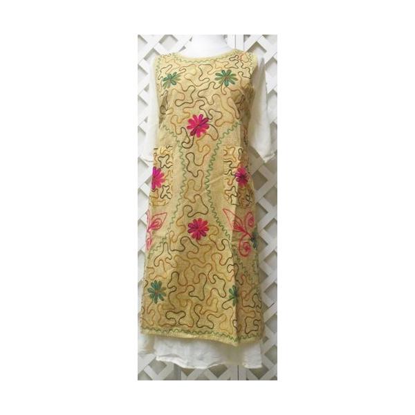 インド綿 カシュクール 刺繍ワンピース