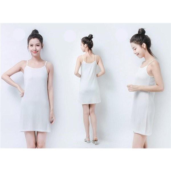 キャミソールワンピース キャミワンピ 無地 インナーワンピース キャミソール 膝丈 ミモレ丈 ロング丈 透けない ペチコート インナー ワンピース ルームウエア ys0376 fashion mille powered by base