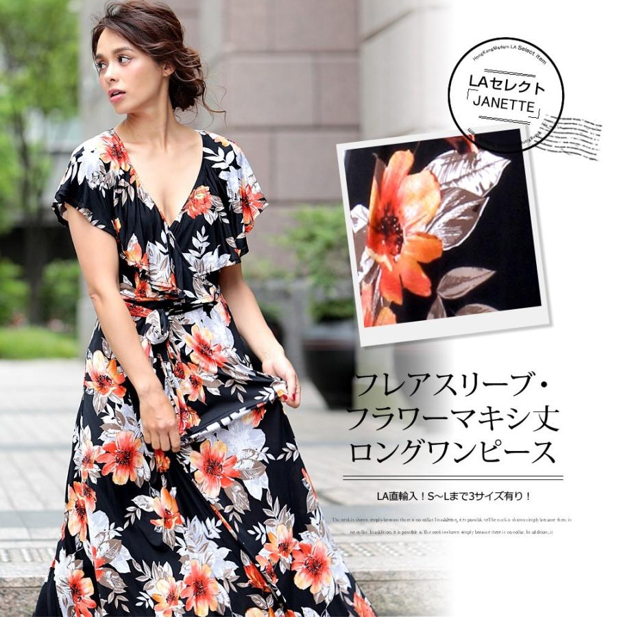 インポート ワンピース aライン ロング丈 マキシ丈 11598 usa 大きいサイズ 大人 上品 デイリー 派手柄 30代 40代 再入荷 七分袖 レトロガール柄 カシュクール マキシ ワンピース ロングワンピース ラップワンピース フレアワンピース エスニック リゾートワンピース la