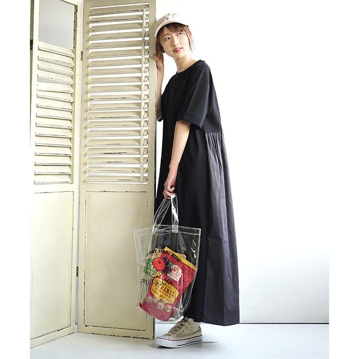 ワンピース レディース トップス ワンピ ロングワンピース カットソー 半袖 丸首 ドルマン フリル ゆったり 綿100 コットン スリット