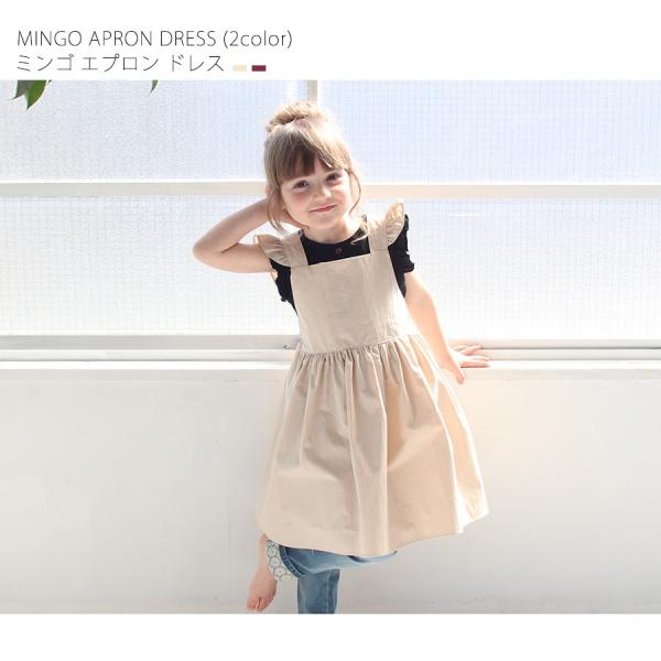 楽天市場 子供服rora ミンゴ エプロンドレス 2color エプロン ドレス 子供 エプロンドレス キッズ 女の子 子供用 コットン 綿 無地 おしゃれ ベージュ ワイン色 人気 フリル 後ろリボン ギフト用 プレゼント 出産祝い 撥水 90 100 110 子供服 ピンクキャット