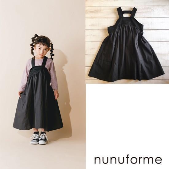 キッズ エプロンワンピース コットンリネン チャコールブラウン