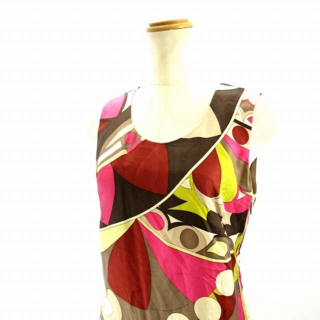 emilio pucci エミリオプッチ 国内正規 archivio レーヨン シルク 71ri92 プッチ柄 クルーネックノースリーブ ワンピース i 38 ピンクxマルチカラー レディース 中古 ブランドリサイクル エコスタイル