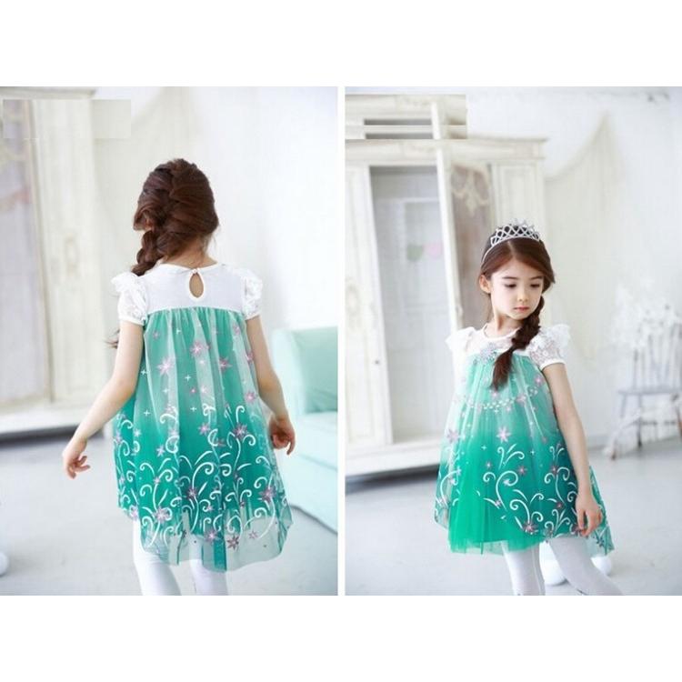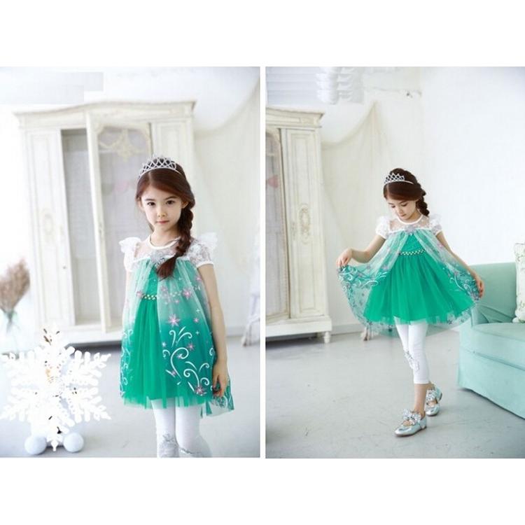 taitas アナ雪 エルサ風 ドレス ワンピース コスプレ サプライズ 子供 130 緑