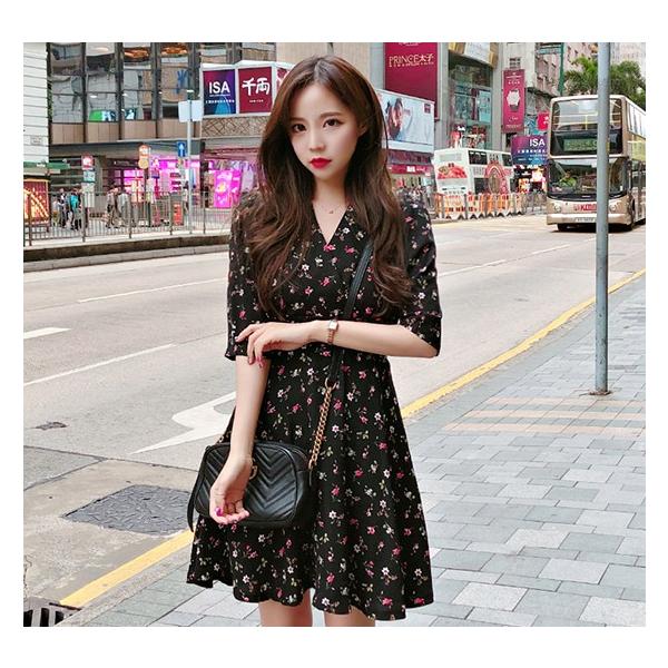 オルチャン ワンピース 膝丈 ワンピース レディース きれいめ 膝丈 清楚 大人 カシュクール aライン 花柄 ラップワンピース 大人 ウエスト調節可 送料無料 rw00107 レディース 韓国ファッション 直輸入通販 セクシーワンピース クールカジュアル 全品送料無料 ukky franky