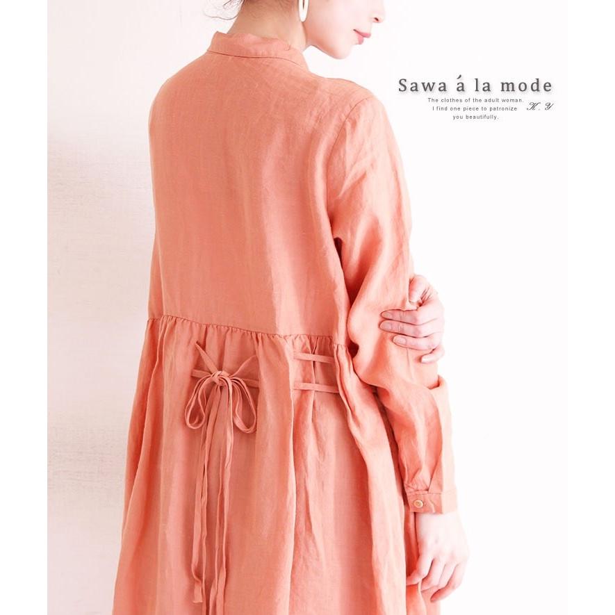 ワンピース オレンジ リボン リネン 長袖 春 夏 秋 春 シャツ オフィスカジュアル 体系カバー 同窓会 およばれ 大人カジュアル レディース 新作 お洒落 可愛い mode 4545 sawa a la mode サワアラモード 通販 yahoo ショッピング