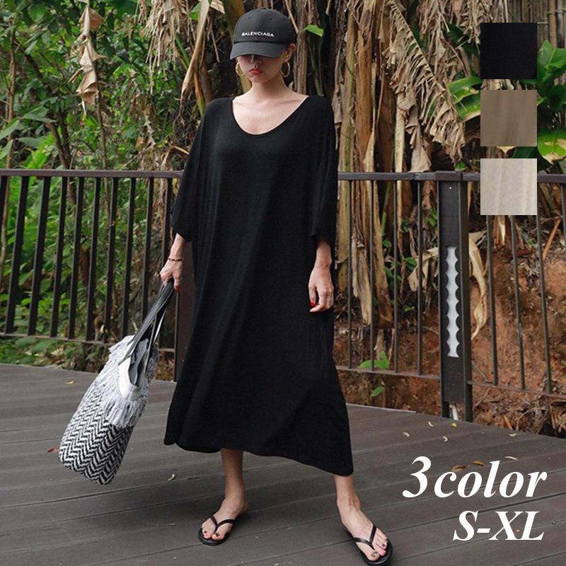 amazon co jp ワンピース レディース サイドスリット ワンピース tシャツ ワンピース マキシ 半袖カットソーワンピース ゆったり 体型カバー お出掛け 春夏 服 ファッション小物