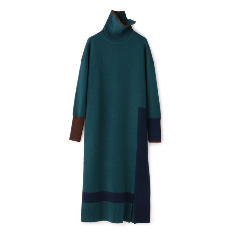 カラーブロック ニットドレス