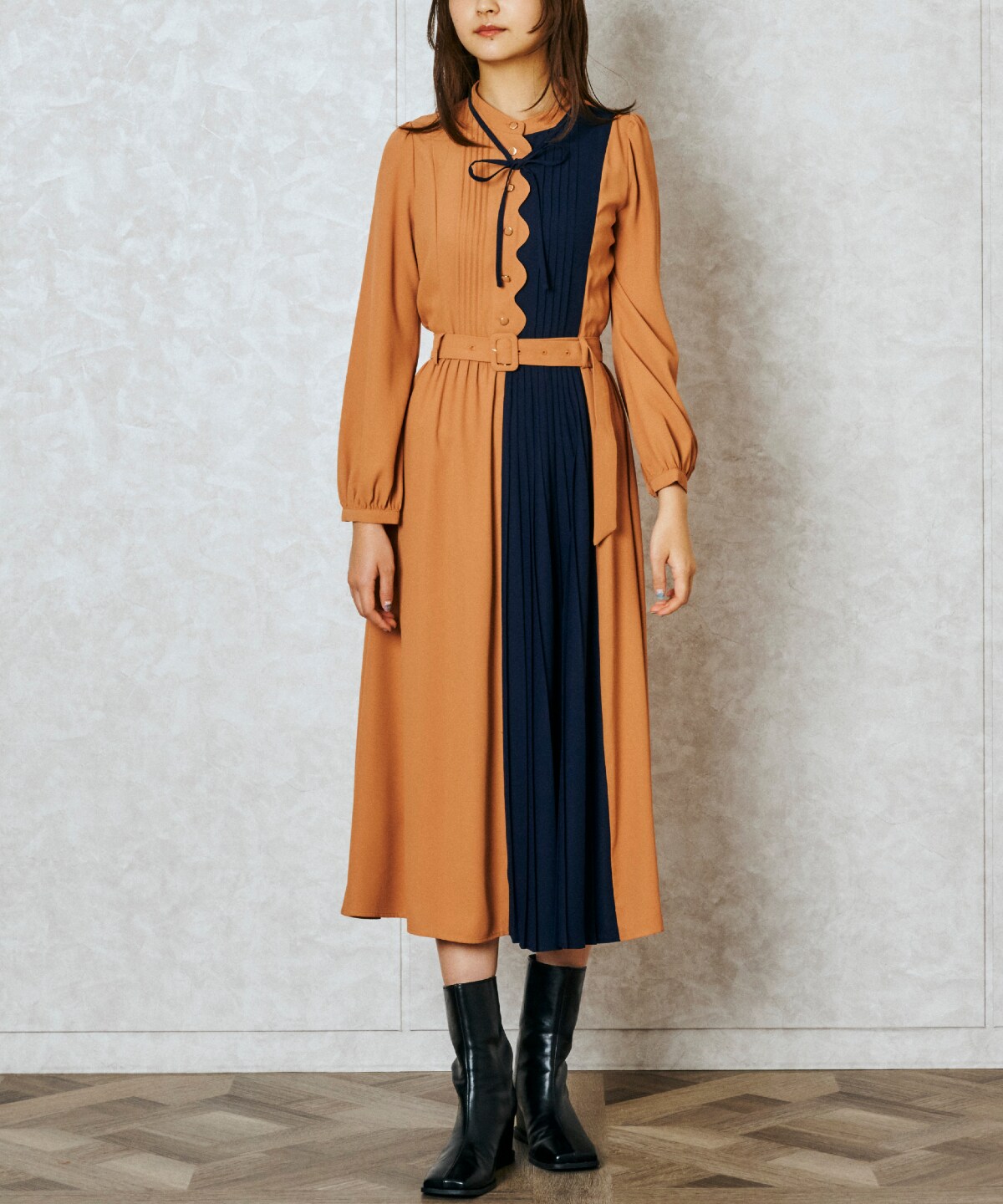 エイミーイストワール eimy istoire カラーブロックプリーツニットワンピース black ファッション通販 fashion walker in locondo