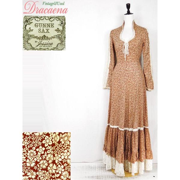 中古 70年代 ヴィンテージ gunne sax ガニーサックス 花柄 ベロア切替 長袖 マキシ丈 ワンピース size5 xs程 古着 レディース コットン ガーゼ の落札情報詳細 ヤフオク落札価格情報 オークフリー スマートフォン版