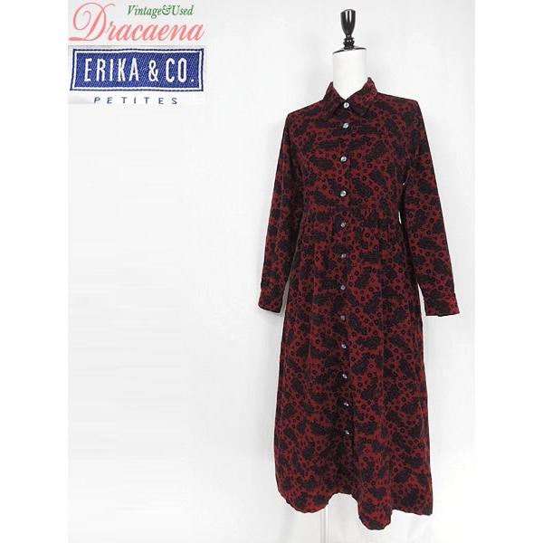 レディースワンピース古着 クラシカル ペイズリー柄 コーデュロイ 長袖 シャツ ワンピース 赤ベース 18lfe07g 古着屋ドラセナyahoo ショップ 通販 yahoo ショッピング