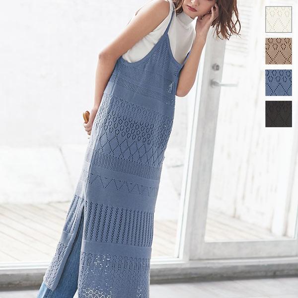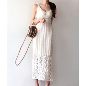 送料無料 レディース ワンピース クロシェ編み クロシェ ロング ノースリーブワンピ 編み ニット 春夏basement o