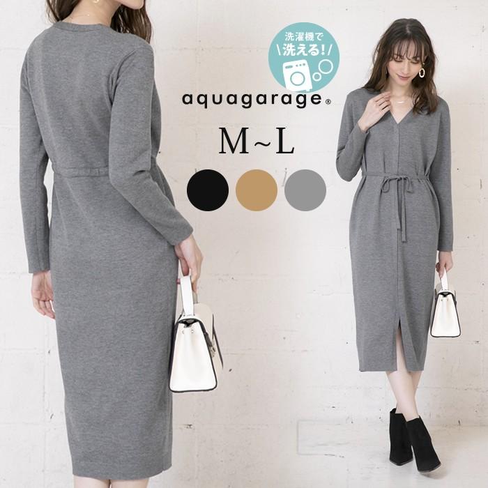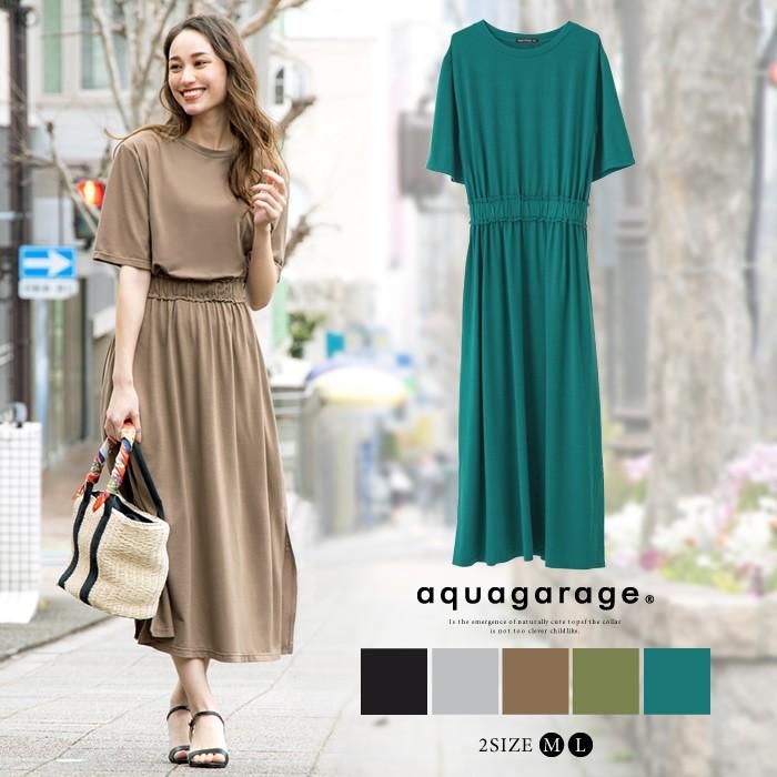 在庫限り 残りわずか ロングワンピース ウエストフリル ブラウジング レディース きれいめ 春夏 ブラック グレー モカ カーキ ブルーグリーン aquagarage アクアガレージ 通販 paypayモール