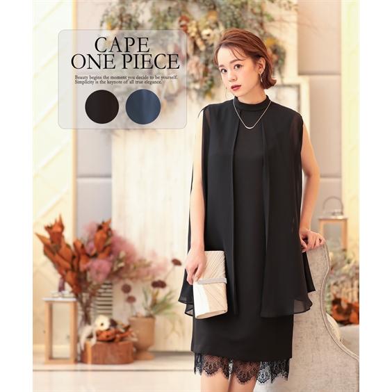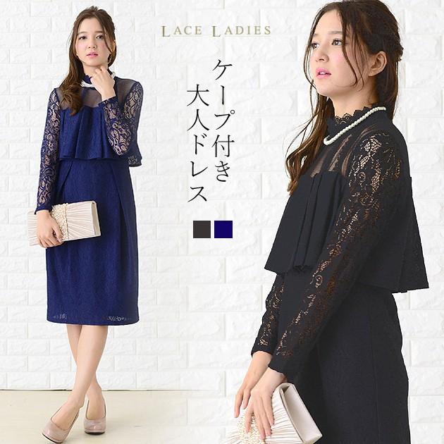パーティードレス 膝丈 レースケープ付き ワンピース ブラック ネイビー フォーマル 体型カバー ベルト付き 結婚式 二次会 披露宴 お呼ばれ szp10 レースレディース 通販 yahoo ショッピング
