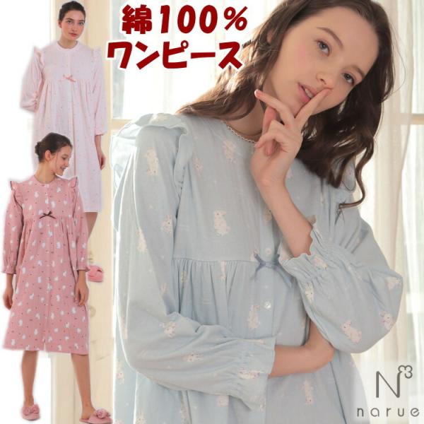 コンビニ受取対応商品 ナルエー リトルバニーワンピース ピンク ライトピンク ブルー m lうさぎ エアーニット二重 コットン100 綿 前開き フリル ルームウェア レディース 超目玉 www muslimaidusa org