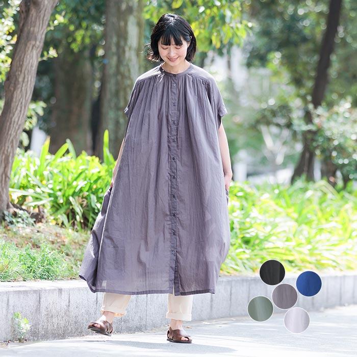 ワンピース 綿100 コットン100 ノースリーブ フレンチスリーブ 半袖 ギャザー ボイル ゆったり 重ね着 前開き 春 夏 レディース 2021ss0423 55 0156 ecoloco 通販 yahoo ショッピング
