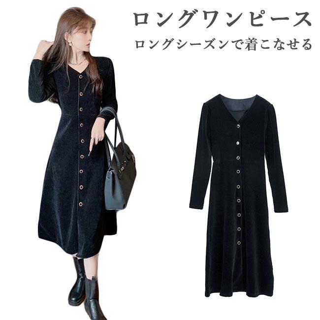コーデュロイ素材 ロングワンピース スクエアネックワンピース コーデュロイワンピース ワンピース ロング丈 ミモレ丈 膝下丈 スクエアネック 長袖 秋 冬 ハイウエスト aライン 可愛い erieri