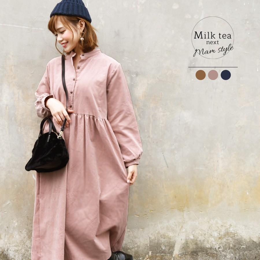 レディース ワンピース milk tea next コットンコーデュロイ パフィーワンピース コーデュロイ 長袖 ロング ワンピ 冬 あったか 綿100 n8300 授乳服とマタニティ服のmilk tea 通販 yahoo ショッピング