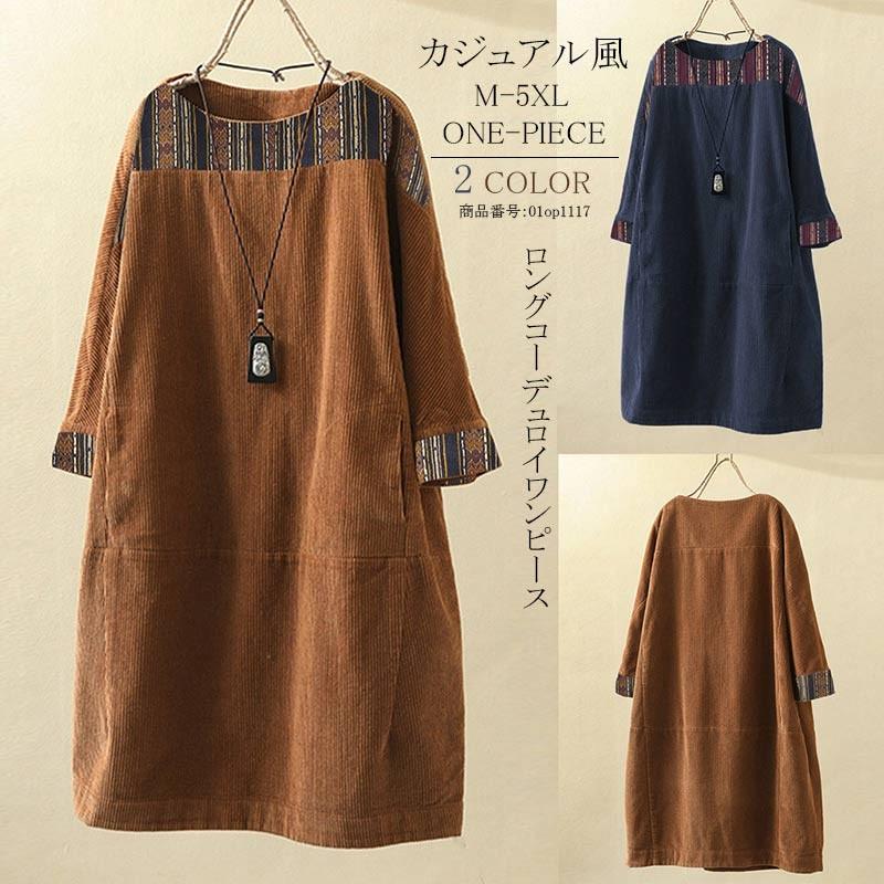 amazon mingleigo 新色 ワンピース レディース 長袖 コーデュロイ プリント 秋冬 ゆったり 大きいサイズ おしゃれ 体型カバー aライン 森ガール カジュアル シンプル チュニックトップス 着痩せ お洒落 通勤 結婚式 パーティードレス お出かけ ワンピース チュニック