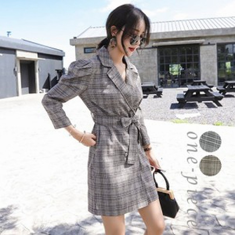 ワンピース レディース 七分袖 ジャケット 2way トレンチコート風 ベルト付き ミニ 膝上 ひざ上 フレア フェミニン エレガント 春 秋 韓国 to21798 10021798 kawaicat 通販 yahoo ショッピング