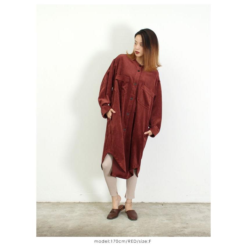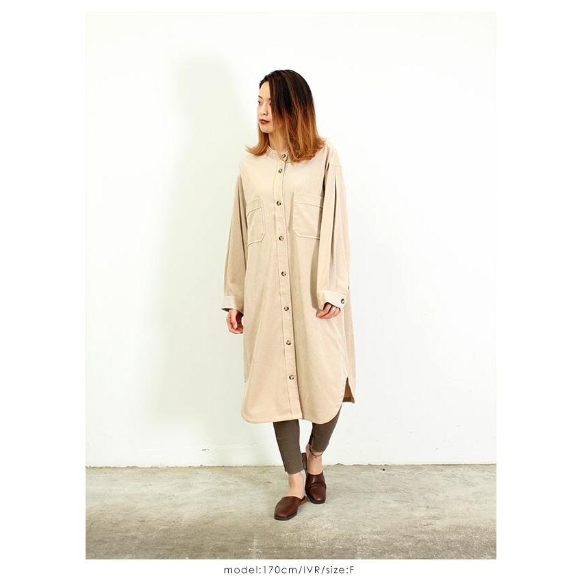 秋冬春コーデュロイシャツワンピース シャツコールコーデュロイで魅せる こだわり抜いた大人のシャツワンピース キャメル