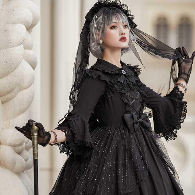 全2色 ワンピース ロリータ ロリータワンピース 甘ロリ ゴスロリ パニエ ベール レディース レース キュート 可愛い プリンセス ロリータ風ワンピ クラシカル ミディアム丈 膝上 長袖 夢かわ セットアップやパンツドレスなど二次会ドレスに合う海外ファッションサイト
