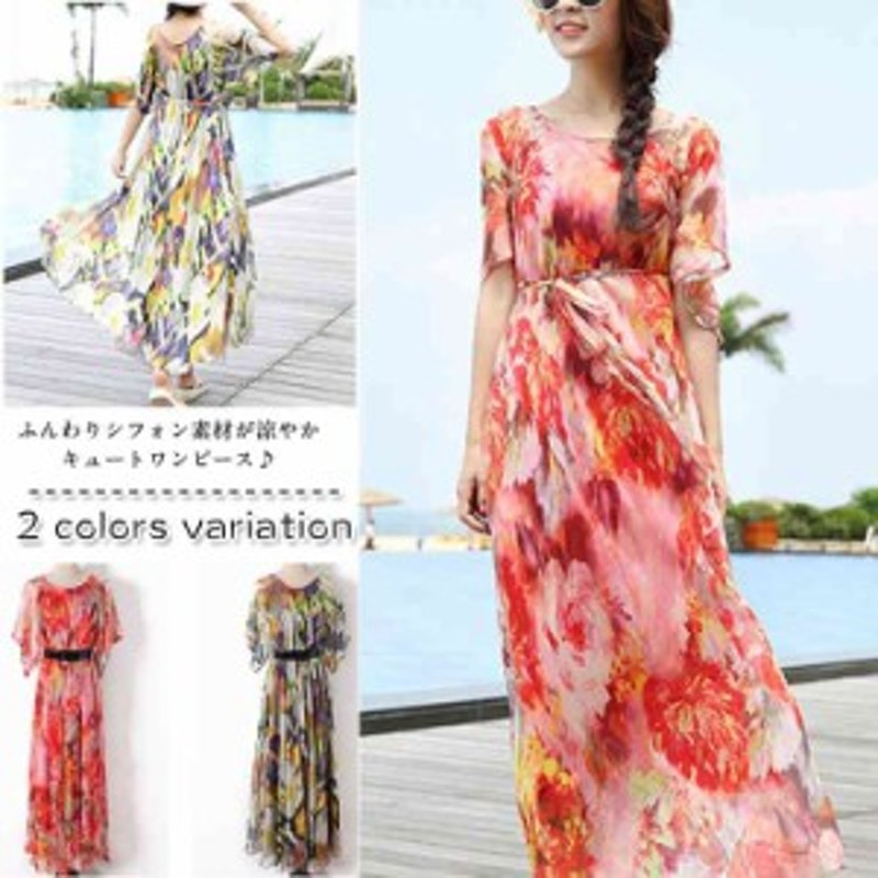 リゾートワンピ リゾートワンピース マキシワンピース 花柄 サマードレス リゾート ワンピース マキシ丈 ロング丈 おしゃれ 夏服 シフォン 水着ストア 通販 paypayモール