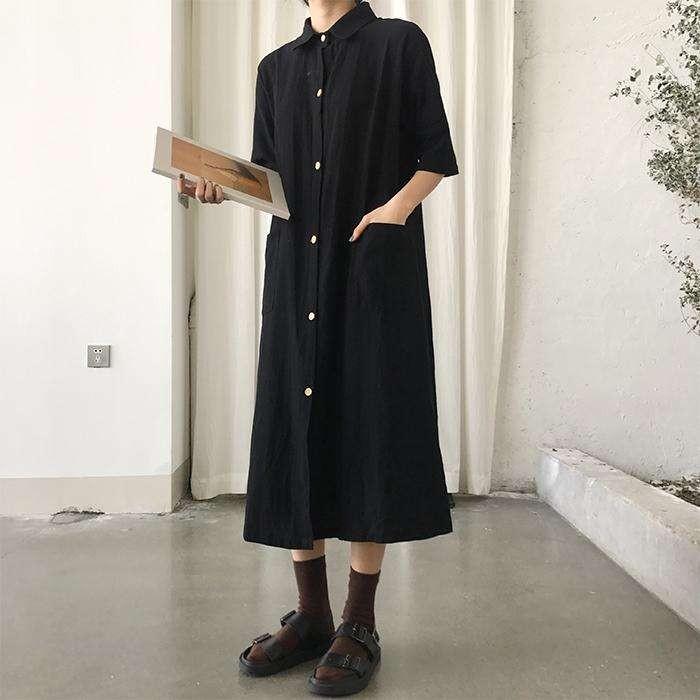 シャツワンピース レディース ロングワンピース リネンシャツワンピース 半袖 ミモレ丈 ゆったり 大きいサイズ カジュアル 体型カバー 春夏 薄手 通勤 オフィス