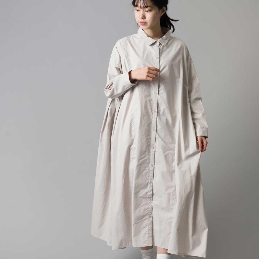 シャツワンピース 長袖 ボタン ハイウエスト 刺繍 襟 aライン 無地 カジュアル レトロ 可愛い シンプル 森ガール ガーリー 大人 select shop skry スクリー powered by base