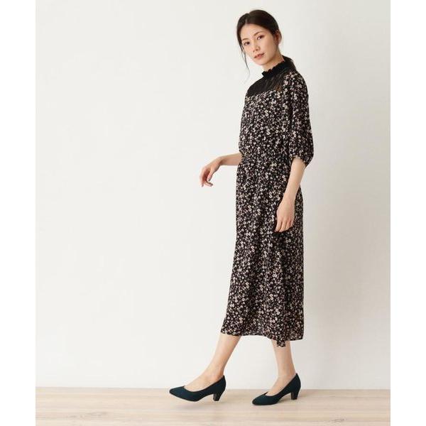 wジョーゼット花柄長袖ワンピース