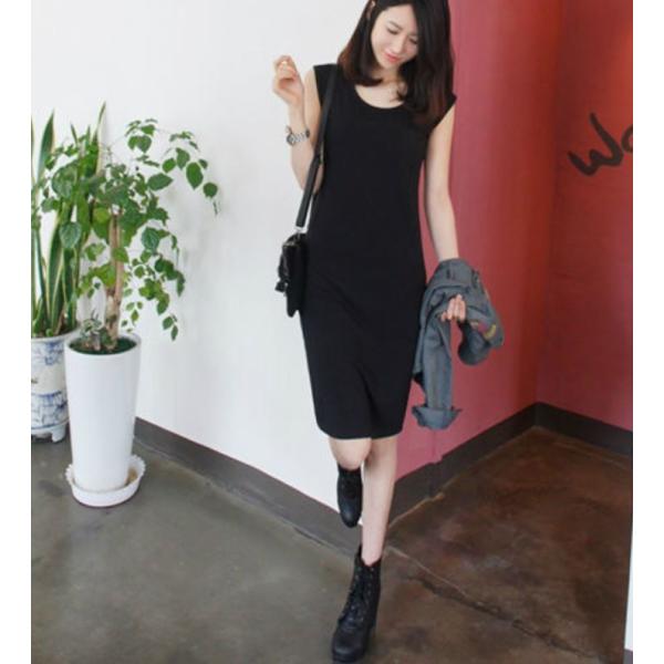 ワンピース レディース ワンピ 膝丈 ノースリーブ 無地 シンプル 黒 ブラック ドレス お呼ばれ 二次会 フレ hane9887 x clothesファッション通販 通販 yahoo ショッピング