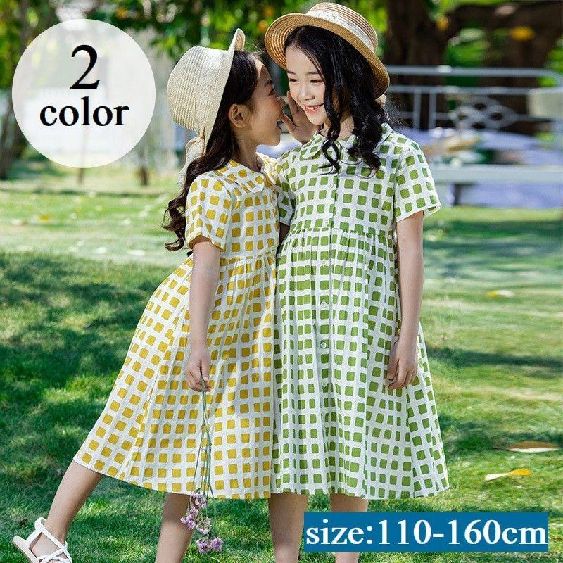 ワンピース 半袖 子供服 女の子 ロング丈 丸襟 前開き ハイウエスト チェック柄 キッズ ジュニア こども服 女児 ボタンフロント ラウンドカラー top 37338 おとりよせ com 通販 yahoo ショッピング