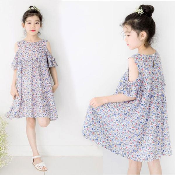 ジュニア ワンピース キッズ ドレス デコルテワンピース 子供 ガールズ サマードレス 女の子 花柄 肩出し 夏 旅行 韓国 スタイリッシュ 半袖 buyee buyee japanese proxy service buy from japan bot online