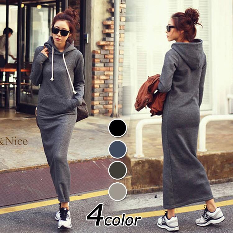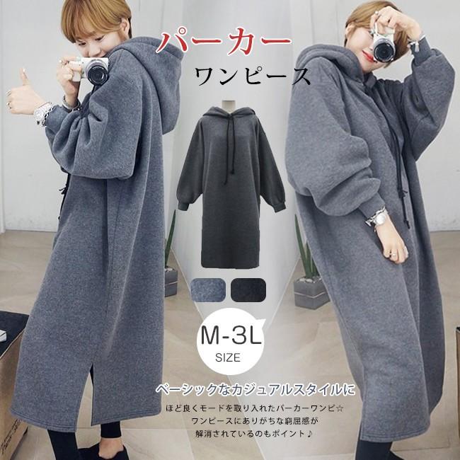 パーカー ワンピース フード付 レディース 長袖 ロング マキシ丈パーカーワンピースシンプル スエット スウェット ルームウエア 部屋着