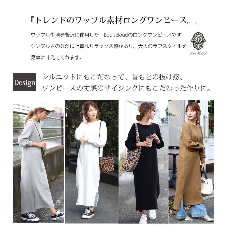 ワッフルワンピース ロング サーマル ワンピース ワッフル 生地 綿 スリット スウェットワンピース bou jeloud 0399 o basic style 通販 yahoo ショッピング
